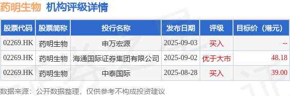 截至2025年11月26日收盘,药明生物(02269.HK)报收于31.94港元,上涨0.25%,成交量2738.4万股,成交额8.81亿港元。投行对该股的评级以买入为主,近90天内共有2家投行给出买入评级,近90天的目标均价为43.59港元。申万宏源最新一份研报给予药明生物买入评级。