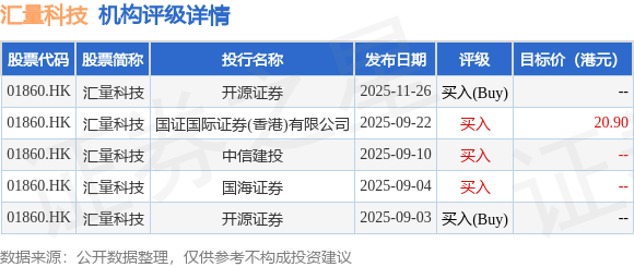 投行对该股的评级以买入为主,近90天内共有3家投行给出买入评级,近90天的目标均价为20.9港元。开源证券最新一份研报给予汇量科技买入(Buy)评级。