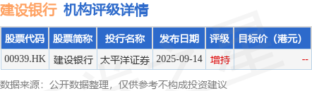 截至2025年11月27日收盘,建设银行(00939.HK)报收于8.23港元,上涨0.24%,成交量2.2亿股,成交额18.03亿港元。投行对该股的评级以增持为主,近90天内共有1家投行给出增持评级。太平洋证券最新一份研报给予建设银行增持评级。