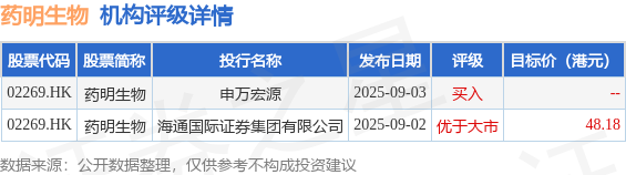 截至2025年11月28日收盘,药明生物(02269.HK)报收于31.16港元,下跌0.45%,成交量1922.18万股,成交额6.0亿港元。投行对该股的评级以优于大市为主,近90天内共有1家投行给出优于大市评级,近90天的目标均价为48.18港元。申万宏源最新一份研报给予药明生物买入评级。