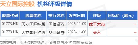 截至2025年11月28日收盘,天立国际控股(01773.HK)报收于2.43港元,上涨0.41%,成交量1114.3万股,成交额2678.67万港元。投行对该股的评级以优于大市为主,近90天内共有1家投行给出优于大市评级。国信证券最新一份研报给予天立国际控股优于大市评级。