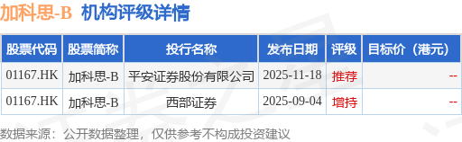 投行对该股的评级以推荐为主,近90天内共有1家投行给出推荐评级。平安证券股份有限公司最新一份研报给予加科思-B推荐评级。