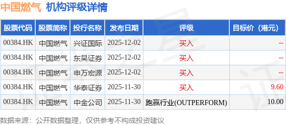 投行对该股的评级以买入为主,近90天内共有4家投行给出买入评级,近90天的目标均价为9.8港元。兴证国际最新一份研报给予中国燃气买入评级。