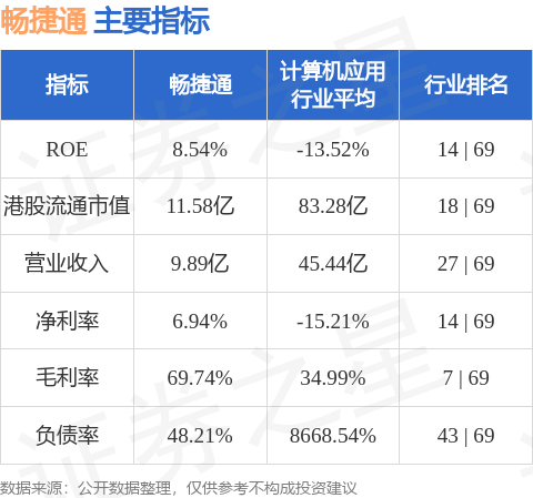 畅捷通港股市值11.58亿港元,在计算机应用行业中排名第18。主要指标见下表: