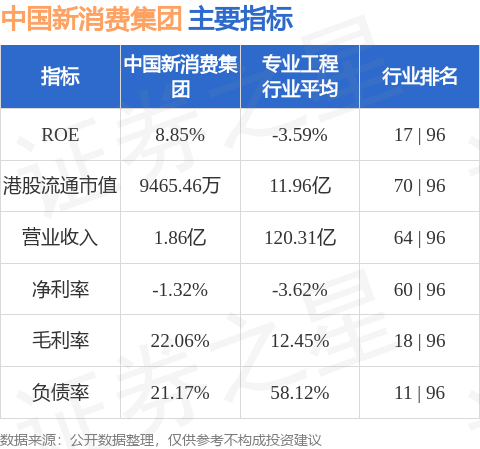 中国新消费集团港股市值9465.46万港元,在专业工程行业中排名第70。主要指标见下表: