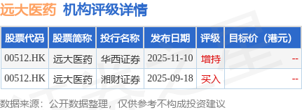 截至2025年12月8日收盘,远大医药(00512.HK)报收于8.15港元,下跌0.12%,成交量620.0万股,成交额5044.74万港元。投行对该股的评级以增持为主,近90天内共有1家投行给出增持评级。华西证券最新一份研报给予远大医药增持评级。
