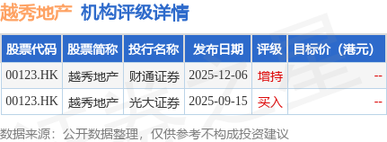 截至2025年12月8日收盘,越秀地产(00123.HK)报收于4.4港元,下跌0.23%,成交量301.61万股,成交额1330.24万港元。投行对该股的评级以增持为主,近90天内共有1家投行给出增持评级。财通证券最新一份研报给予越秀地产增持评级。
