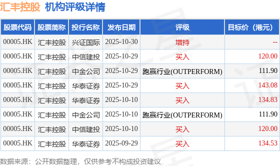 截至2025年12月8日收盘,汇丰控股(00005.HK)报收于109.1港元,下跌1.71%,成交量1905.88万股,成交额20.95亿港元。投行对该股的评级以买入为主,近90天内共有5家投行给出买入评级,近90天的目标均价为125.18港元。兴证国际最新一份研报给予汇丰控股增持评级。
