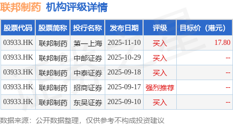 截至2025年12月9日收盘,联邦制药(03933.HK)报收于12.7港元,下跌0.31%,成交量578.87万股,成交额7313.95万港元。投行对该股的评级以买入为主,近90天内共有4家投行给出买入评级,近90天的目标均价为17.8港元。第一上海最新一份研报给予联邦制药买入评级,目标价17.8港元。