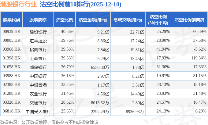 由于港股人民币柜台交易股票成交金额较小,沽空比例普遍偏高,为了避免干扰,已将人民币柜台交易股票从排行表格中剔除。