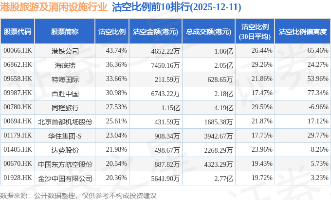 从沽空比例来看,港铁公司、海底捞、特海国际沽空比例位居行业前三,分别为43.74%、36.36%、33.66%。