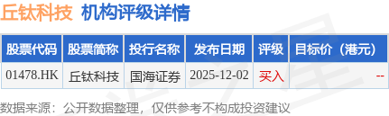 投行对该股的评级以买入为主,近90天内共有1家投行给出买入评级。国海证券最新一份研报给予丘钛科技买入评级。