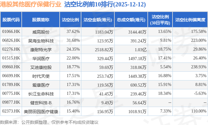 从沽空比例偏离度来看,脑动极光-B、艾迪康控股、昊海生物科技沽空比例偏离度位居行业前三,分别为313.87%、238.93%、223%。