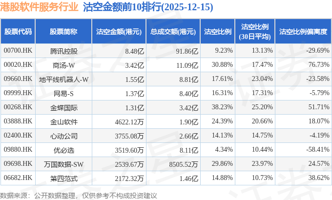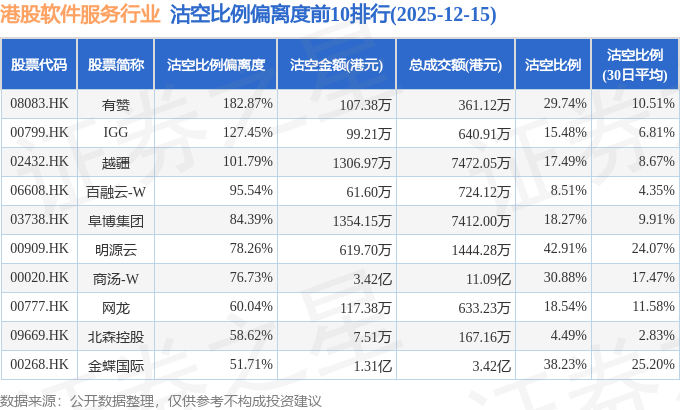 从沽空比例来看,明源云、金蝶国际、商汤-W沽空比例位居行业前三,分别为42.91%、38.23%、30.88%。