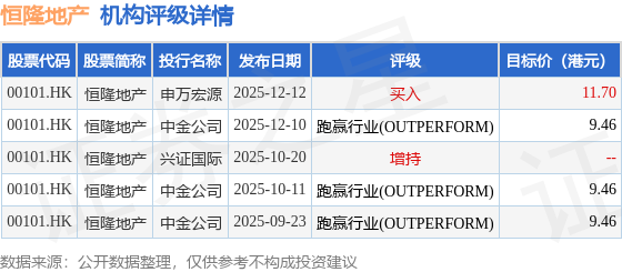 截至2025年12月16日收盘,恒隆地产(00101.HK)报收于8.93港元,下跌0.22%,成交量647.64万股,成交额5774.99万港元。投行对该股的评级以跑赢行业(OUTPERFORM)为主,近90天内共有3家投行给出跑赢行业(OUTPERFORM)评级,近90天的目标均价为10.02港元。申万宏源最新一份研报给予恒隆地产买入评级,目标价11.7港元。