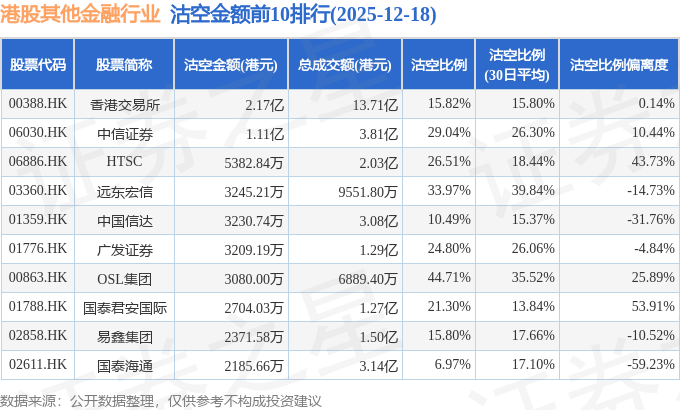 由于港股人民币柜台交易股票成交金额较小,沽空比例普遍偏高,为了避免干扰,已将人民币柜台交易股票从排行表格中剔除。