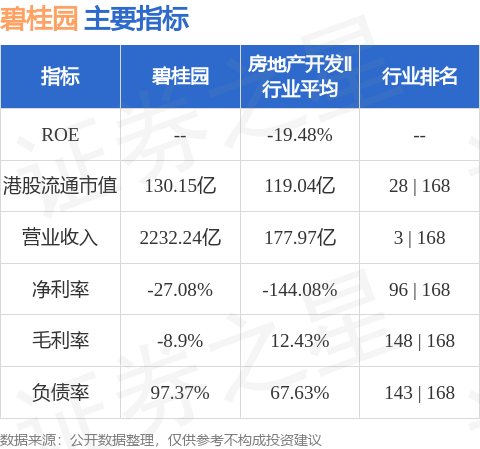 碧桂园港股市值130.15亿港元,在房地产开发Ⅱ行业中排名第28。主要指标见下表: