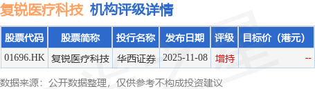 截至2026年1月5日收盘,复锐医疗科技(01696.HK)报收于4.4港元,上涨2.56%,成交量70.4万股,成交额309.57万港元。投行对该股的评级以增持为主,近90天内共有1家投行给出增持评级。华西证券最新一份研报给予复锐医疗科技增持评级。