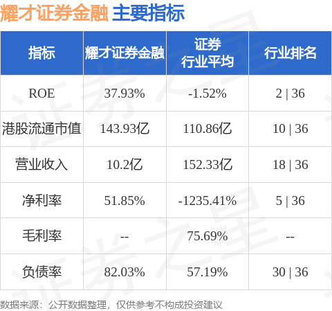 耀才证券金融港股市值143.93亿港元,在证券行业中排名第10。主要指标见下表: