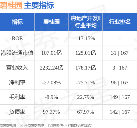 碧桂园港股市值107.01亿港元,在房地产开发Ⅱ行业中排名第31。主要指标见下表: