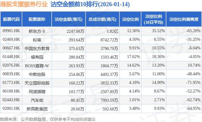 从沽空金额来看,新东方-S、粉笔、中国东方教育沽空金额位居行业前三,分别为2247.08万港元、393.64万港元、375.63万港元。