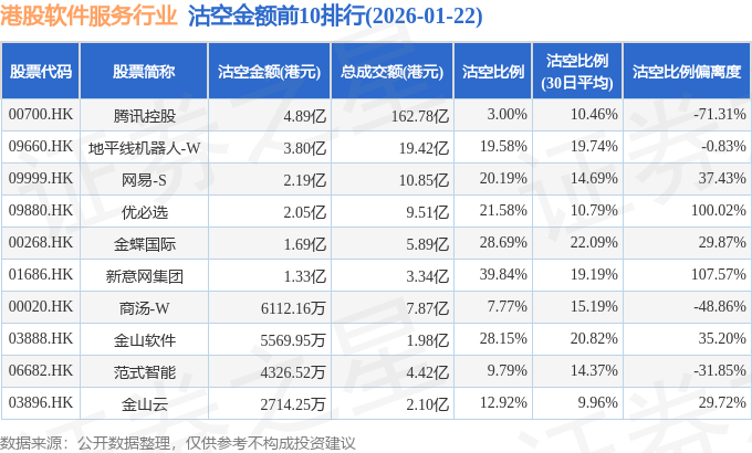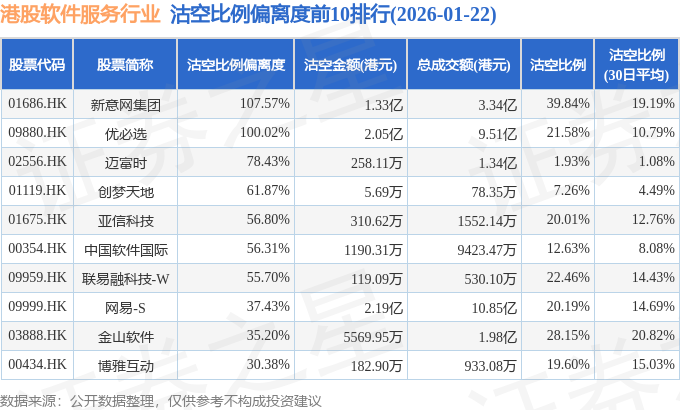 从沽空比例来看,新意网集团、金蝶国际、金山软件沽空比例位居行业前三,分别为39.84%、28.69%、28.15%。