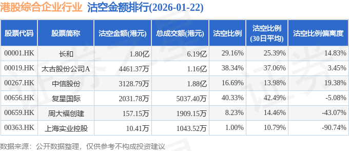 由于港股人民币柜台交易股票成交金额较小,沽空比例普遍偏高,为了避免干扰,已将人民币柜台交易股票从排行表格中剔除。
