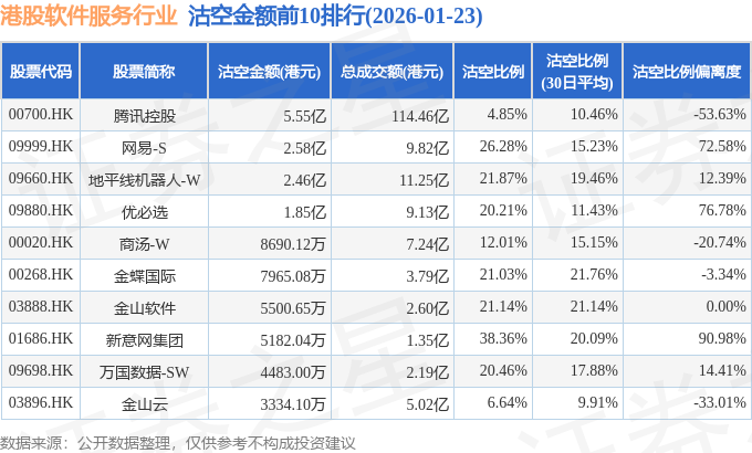 由于港股人民币柜台交易股票成交金额较小,沽空比例普遍偏高,为了避免干扰,已将人民币柜台交易股票从排行表格中剔除。
