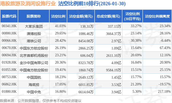 从沽空比例来看,大家乐集团、澳博控股、港铁公司沽空比例位居行业前三,分别为41.03%、29.65%、28.42%。