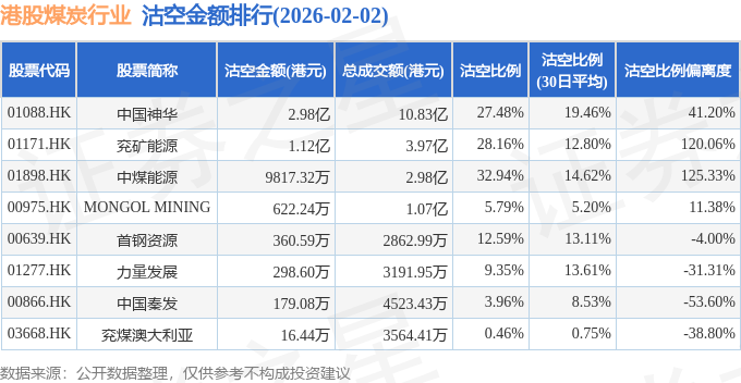 从沽空金额来看,中国神华、兖矿能源、中煤能源沽空金额位居行业前三,分别为2.98亿港元、1.12亿港元、9817.32万港元。
