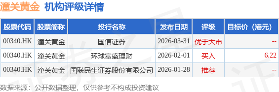 投行对该股的评级以推荐为主,近90天内共有1家投行给出推荐评级,近90天的目标均价为6.22港元。国信证券最新一份研报给予潼关黄金优于大市评级。