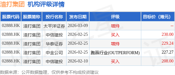 截至2026年4月23日收盘,渣打集团(02888.HK)报收于186.5港元,下跌2.86%,成交量88.55万股,成交额1.66亿港元。投行对该股的评级以增持为主,近90天内共有2家投行给出增持评级,近90天的目标均价为223.63港元。太平洋证券最新一份研报给予渣打集团增持评级。