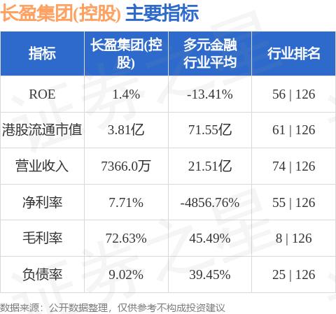 长盈集团(控股)港股市值3.81亿港元,在多元金融行业中排名第61。主要指标见下表: