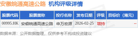 投行对该股的评级以增持为主,近90天内共有1家投行给出增持评级。申万宏源最新一份研报给予安徽皖通高速公路增持评级。