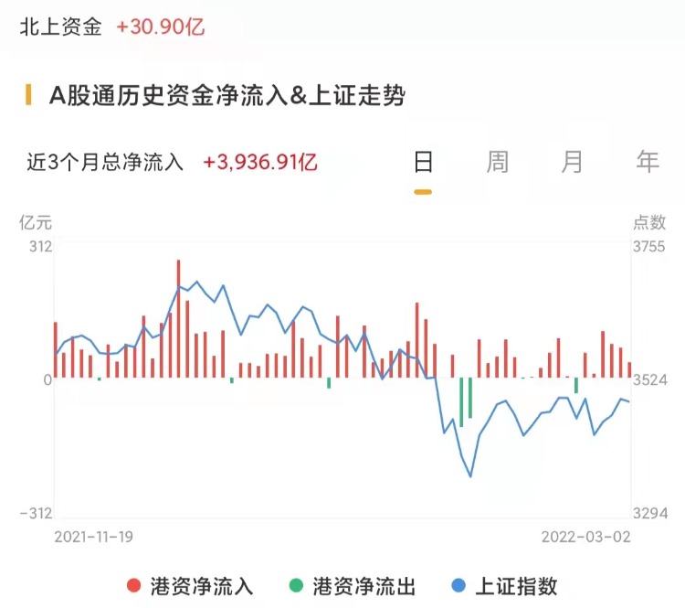 北上资金今日净流入30.9亿元,上一交易日净流入32.56亿元。