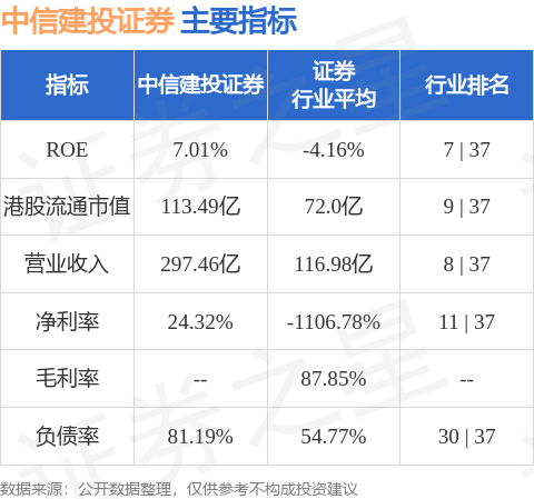 中信建投证券港股市值113.49亿港元,在证券行业中排名第9。主要指标见下表: