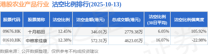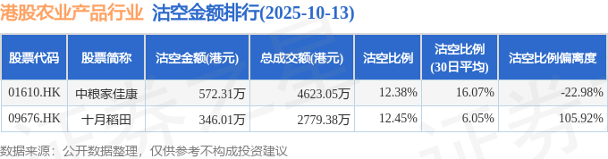 由于港股人民币柜台交易股票成交金额较小,沽空比例普遍偏高,为了避免干扰,已将人民币柜台交易股票从排行表格中剔除。
