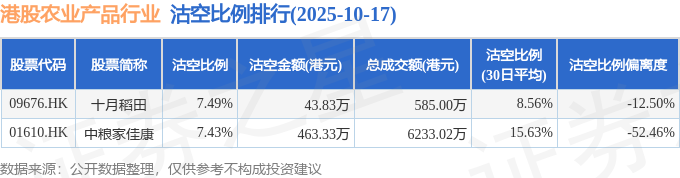由于港股人民币柜台交易股票成交金额较小,沽空比例普遍偏高,为了避免干扰,已将人民币柜台交易股票从排行表格中剔除。