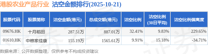 由于港股人民币柜台交易股票成交金额较小,沽空比例普遍偏高,为了避免干扰,已将人民币柜台交易股票从排行表格中剔除。