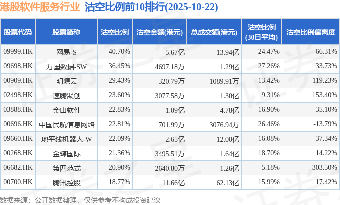 由于港股人民币柜台交易股票成交金额较小,沽空比例普遍偏高,为了避免干扰,已将人民币柜台交易股票从排行表格中剔除。