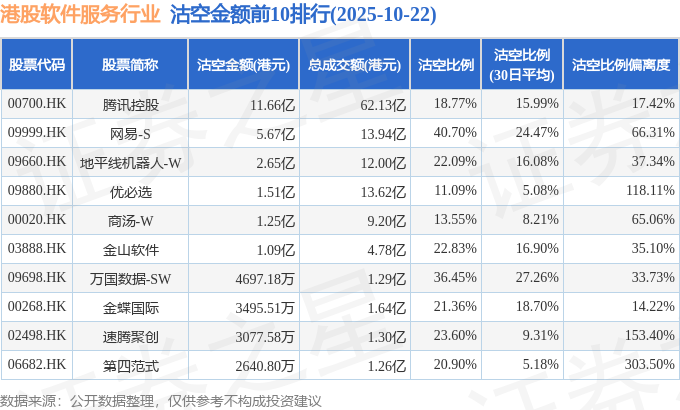 从沽空金额来看,腾讯控股、网易-S、地平线机器人-W沽空金额位居行业前三,分别为11.66亿港元、5.67亿港元、2.65亿港元。