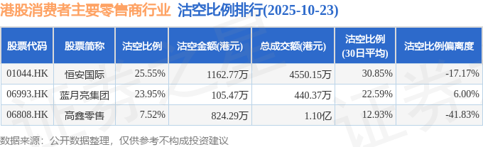 由于港股人民币柜台交易股票成交金额较小,沽空比例普遍偏高,为了避免干扰,已将人民币柜台交易股票从排行表格中剔除。