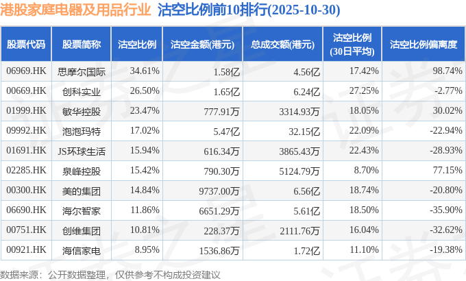 从沽空比例来看,思摩尔国际、创科实业、敏华控股沽空比例位居行业前三,分别为34.61%、26.5%、23.47%。