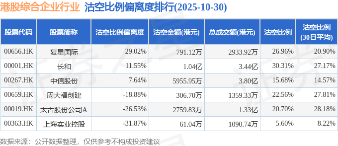 从沽空比例偏离度来看,复星国际、长和、中信股份沽空比例偏离度位居行业前三,分别为29.02%、11.55%、7.64%。