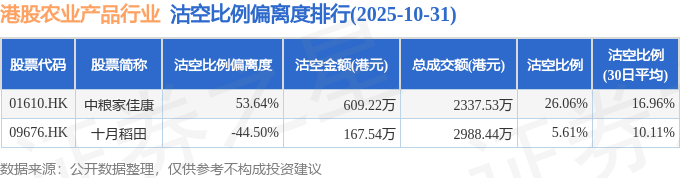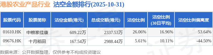 由于港股人民币柜台交易股票成交金额较小,沽空比例普遍偏高,为了避免干扰,已将人民币柜台交易股票从排行表格中剔除。