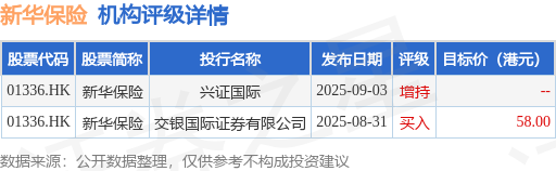截至2025年10月31日收盘,新华保险(01336.HK)报收于49.1港元,下跌2.09%,成交量1582.01万股,成交额7.89亿港元。投行对该股的评级以增持为主,近90天内共有1家投行给出增持评级,近90天的目标均价为58港元。兴证国际最新一份研报给予新华保险增持评级。