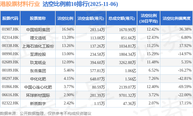 从沽空比例偏离度来看,中国旭阳集团、上海石油化工股份、新质数字沽空比例偏离度位居行业前三,分别为36.38%、17.92%、17.15%。