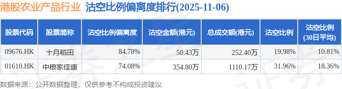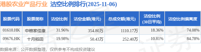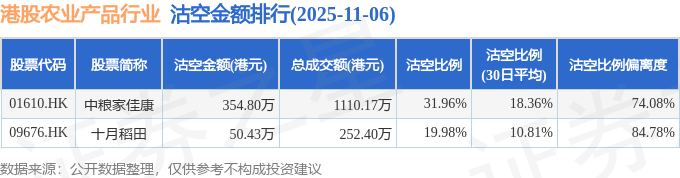 由于港股人民币柜台交易股票成交金额较小,沽空比例普遍偏高,为了避免干扰,已将人民币柜台交易股票从排行表格中剔除。