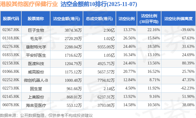 从沽空金额来看,巨子生物、毛戈平、康耐特光学沽空金额位居行业前三,分别为3874.36万港元、2720.29万港元、2288.04万港元。