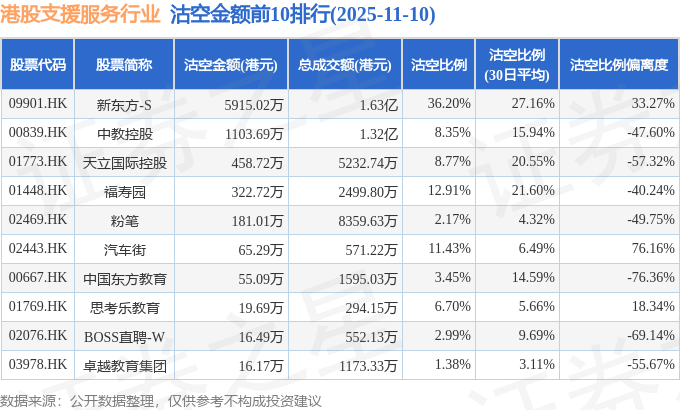 从沽空金额来看,新东方-S、中教控股、天立国际控股沽空金额位居行业前三,分别为5915.02万港元、1103.69万港元、458.72万港元。